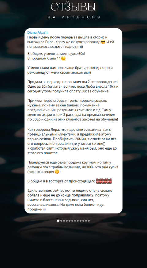 Обратную связь от меня по твоему контенту и продажам